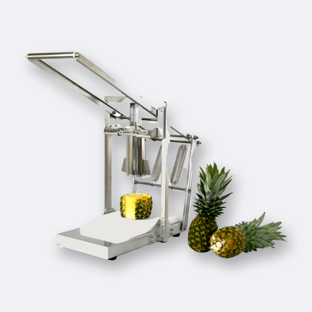 단 한 번의 작동으로 파인애플의 껍질이 벗겨지고 심(코어)이 분리되며, 지렛대 원리를 이용하여 여성이라도 손쉽게 작동을 할 수 있고, 본체와 칼날부가 간단하게 탈부착 되어 세척이 간편합니다.
