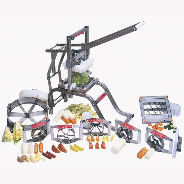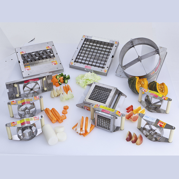 멀티 프레스 커터는 기존의 기계로 자르지 못했던 재료나 자르기 힘들었던 재료의 분할, 스틱, 깍뚜썰기, 둥글게 썰기, 꽃모양, 심빼기 분할 등에 최적인 다목적 커터입니다.